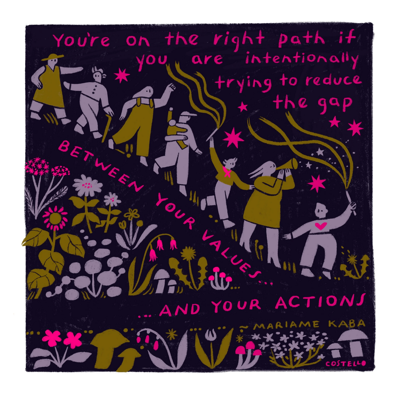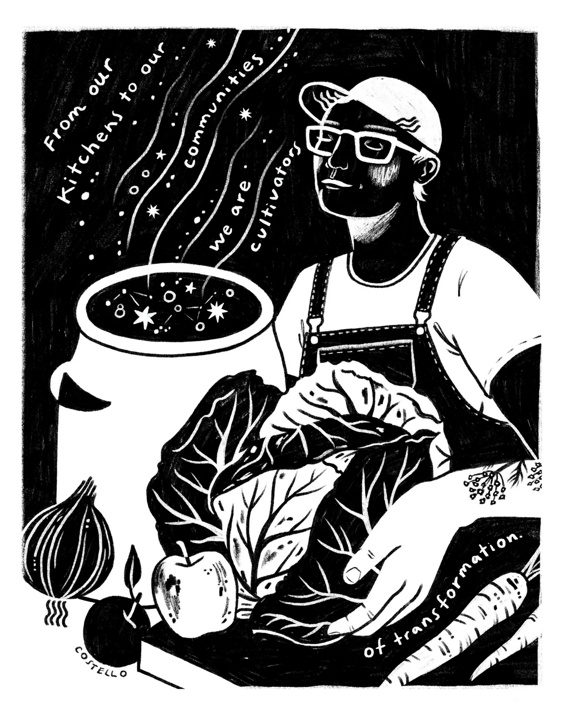 Olly Costello is a non-binary, queer illustrator, prison abolitionist, urban gardener, and community seed saver based in Chicago, IL, USA. Their artistic practice explores themes of interconnectedness, queer ecology, accountability, transformative justice, community, and belonging. They also honor their Sicilian and Irish ancestry through seed saving while supporting the Indigenous people’s movement to return seeds from settler seed banks, university collections, and museum shelves back to Native communities. Costello's work engages deeply with grief and loss while promoting resilience and healing, believing that art is essential for understanding our interdependence and inspiring communities to honor the Earth and show up for each other's struggles. Olly hopes their work can be a small part of creating a new culture that’s grounded in honoring the inherent sacredness of all beings while pushing us beyond violent cultures of imperialism, white supremacy and capitalism.